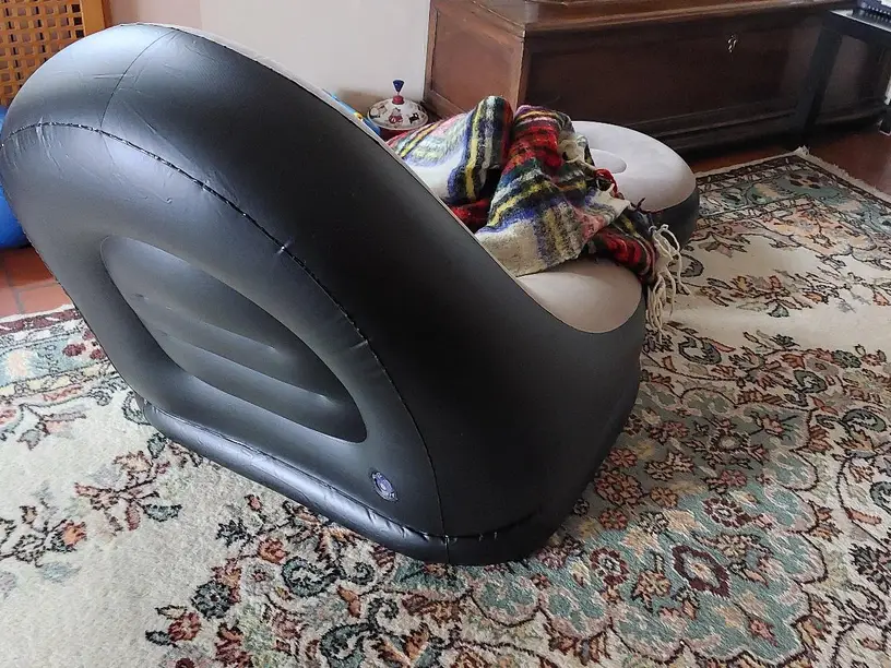 املأها بالهواء: استمر في النفخ حتى تصل الأريكة إلى الصلابة المطلوبة وتصبح جاهزة للاستخدام.